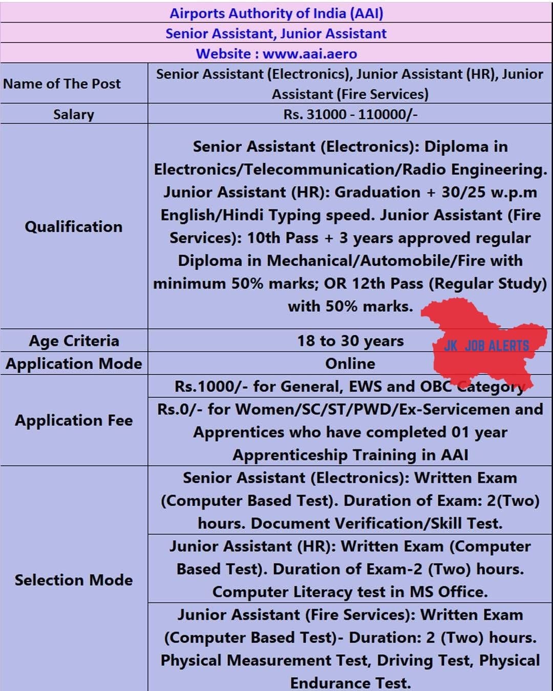 • Apply online only through the official AAI website.