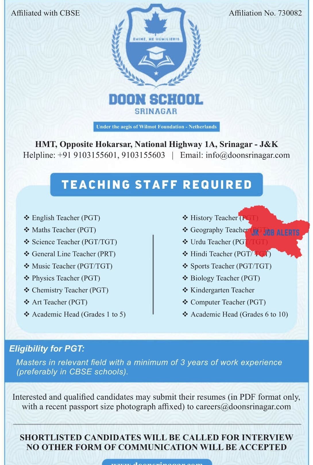 - For PGT Posts: Master’s degree in the relevant subject with a minimum of 3 years of work experience (preferably in CBSE schools).