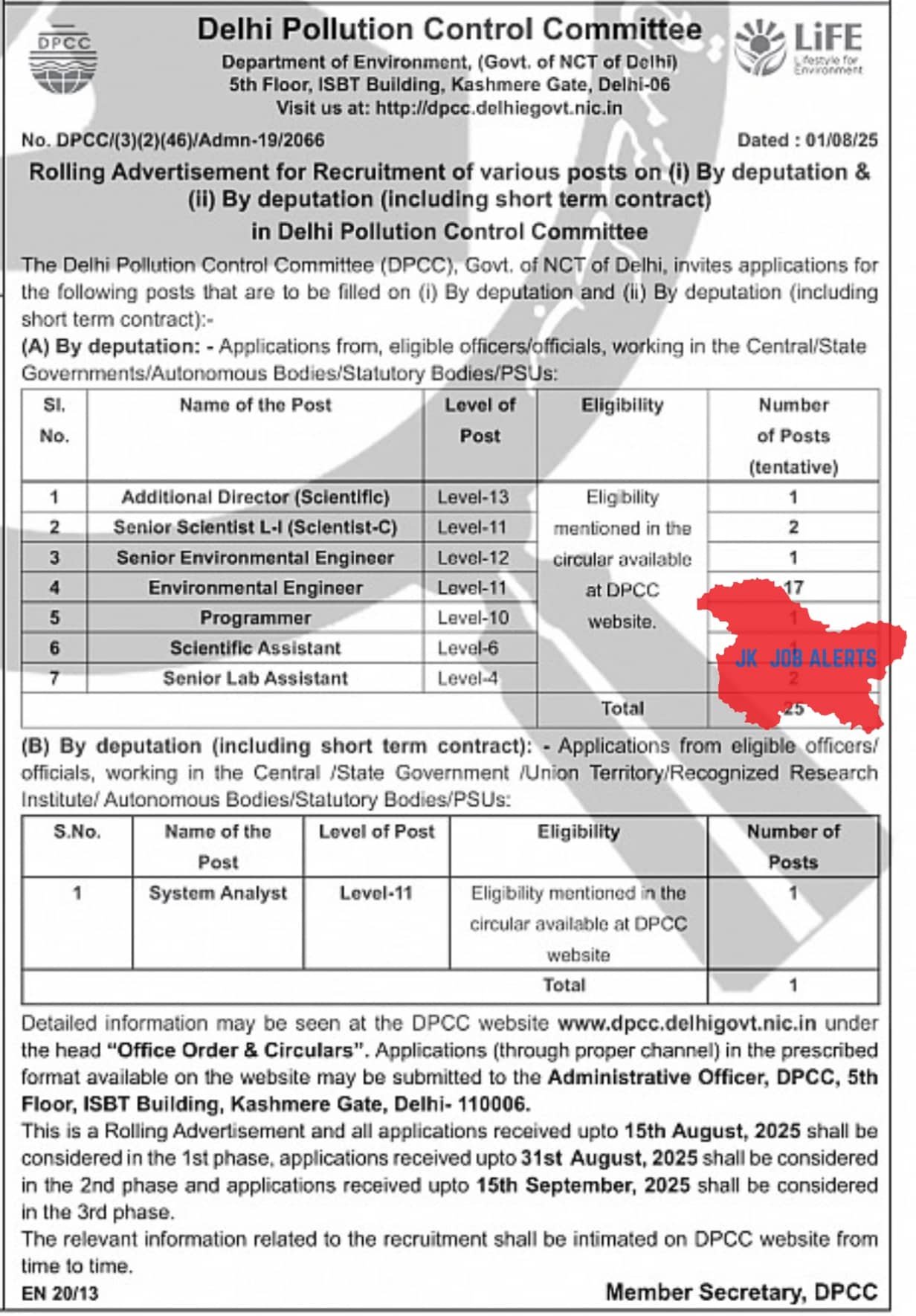 Rolling Advertisement | Advertisement No.: DPCC/(3)(2)(46)/Admn-19/2066 | Dated: 01 August 2025