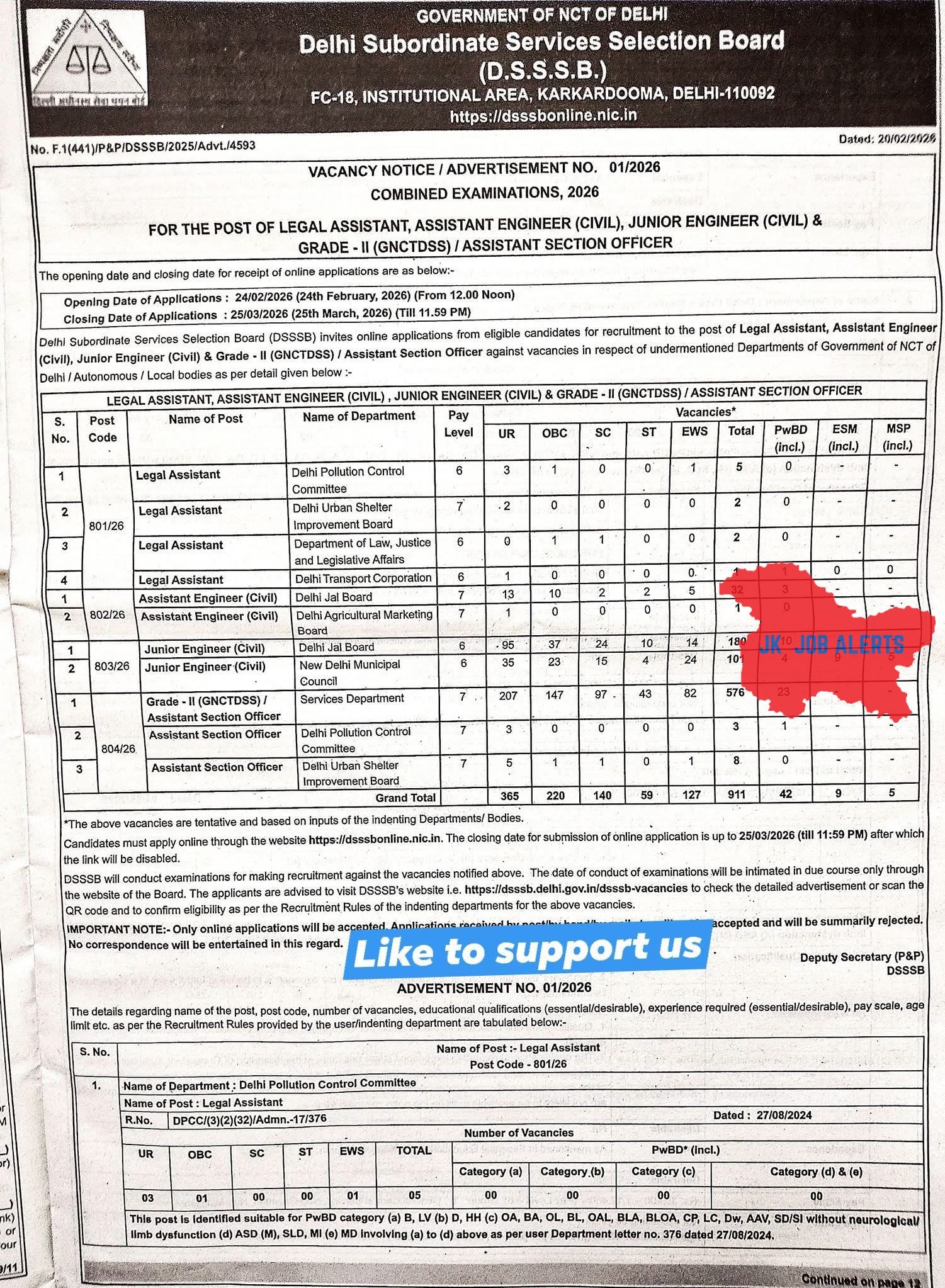 HomeGovt JobsDSSSB Recruitment 2026 – 911 Vacancies for Legal Assistant, JE, AE &...