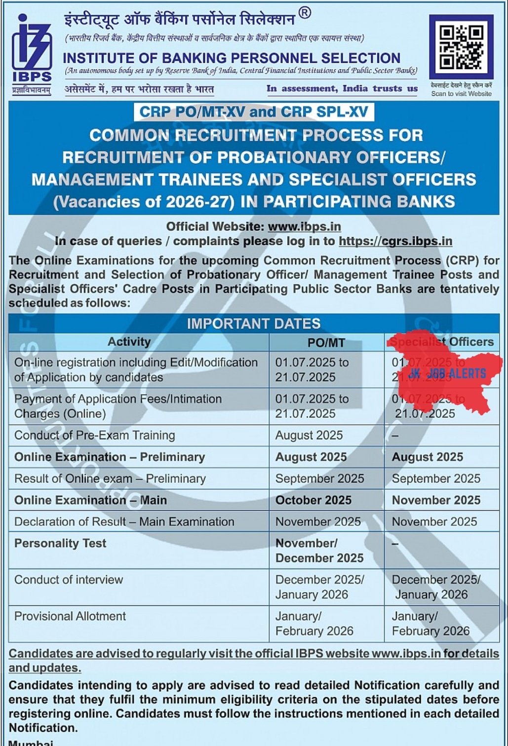 Common Recruitment Process for Probationary Officers/Management Trainees and Specialist Officers (2026–27)