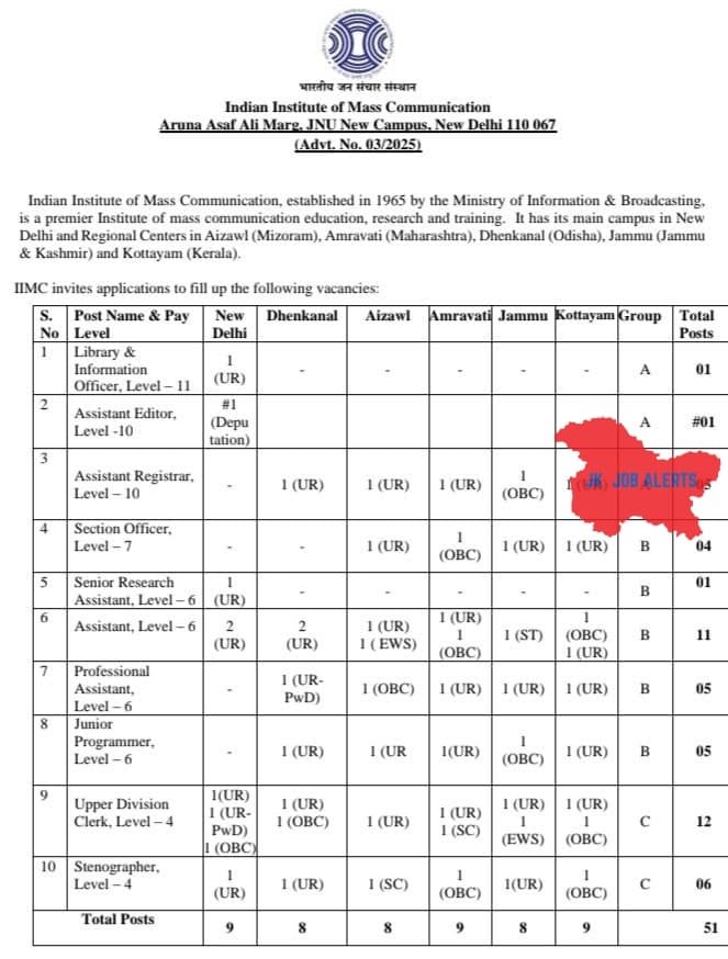 Location: New Delhi & Regional Centers (Aizawl, Amravati, Dhenkanal, Jammu, Kottayam)
