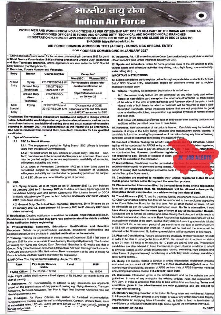 Notification: AFCAT 01/2026 / NCC Special Entry