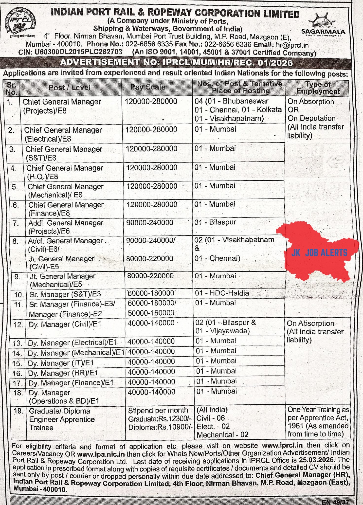 Advertisement No.: IPRCL/MUM/HR/REC. 01/2026