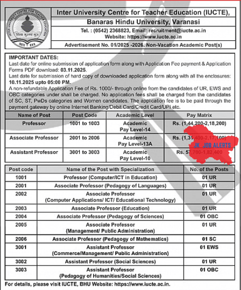 HomeGovt JobsIUCTE BHU Recruitment 2025 – Faculty Posts