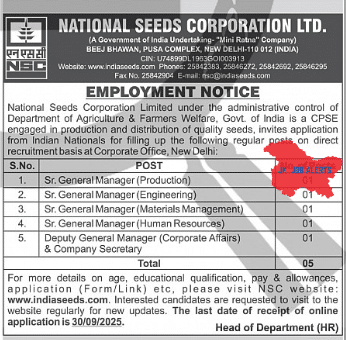 Organization: National Seeds Corporation Ltd. (NSC)