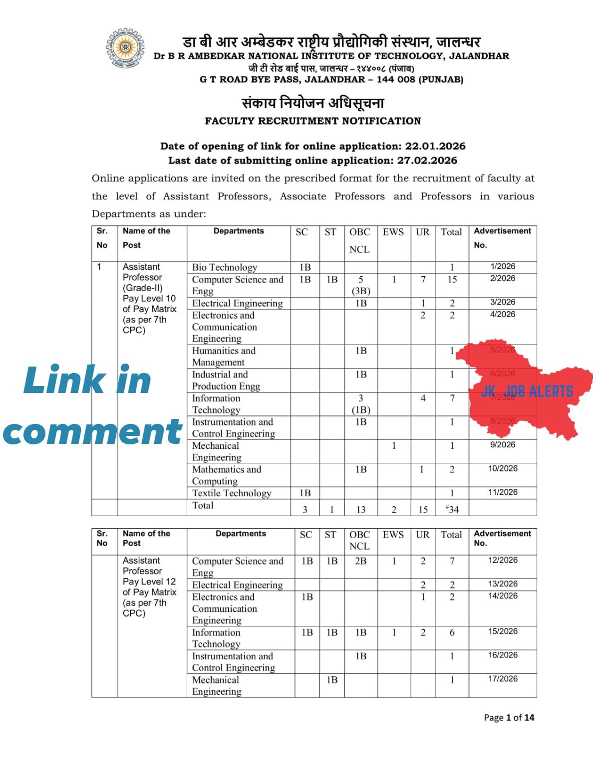 For more jobs in Jammu and Kashmir, visit our website jkjobalerts.com.