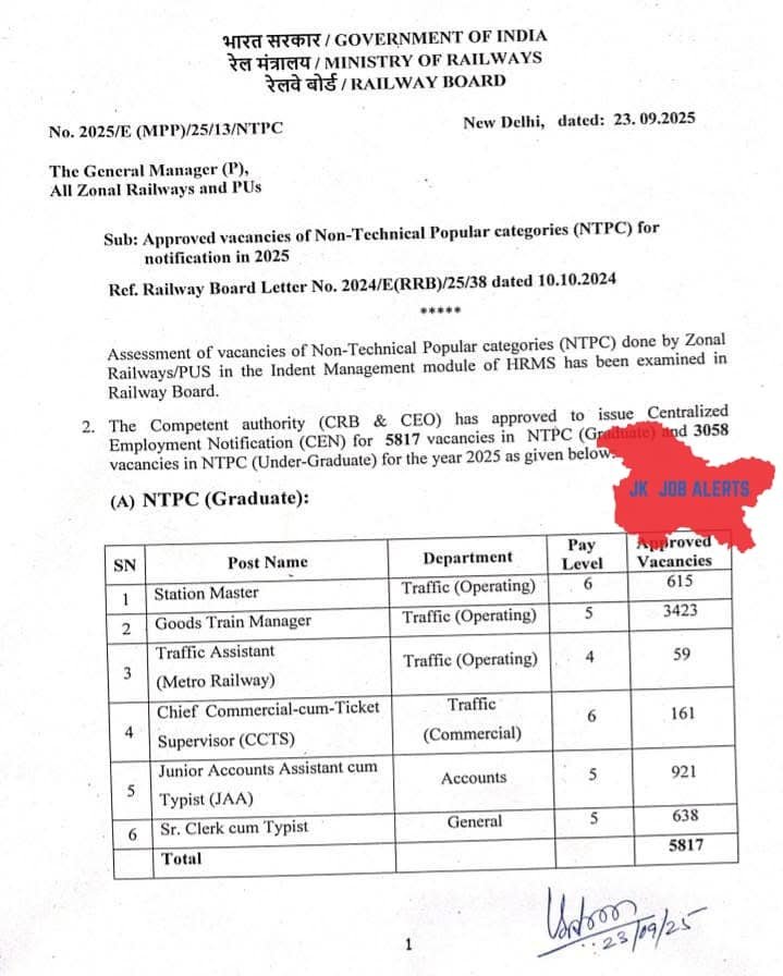 - NTPC (Graduate) – 5817 Vacancies