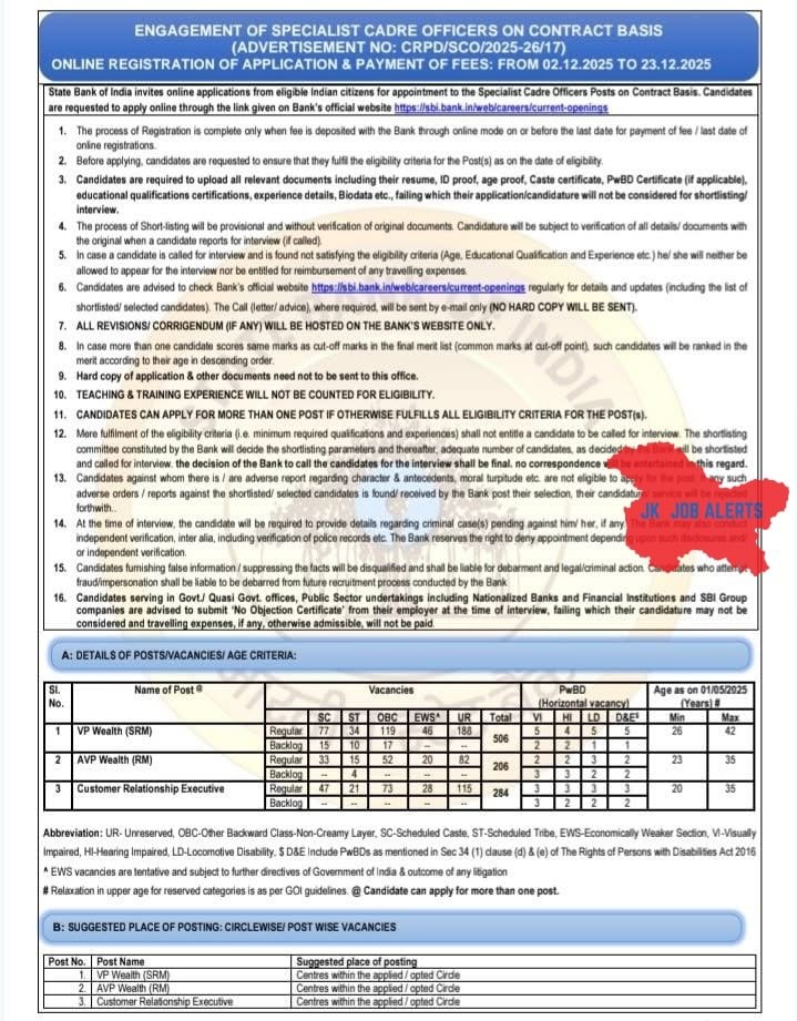 - SBI Specialist Officer Recruitment – jkjobalerts.com